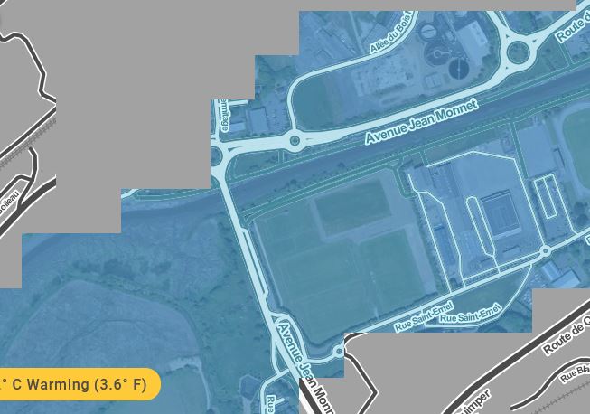 Après de nombreux autres rapports qui vont dans le même sens, celui de l’association scientifique américaine Climate Central pointe les zones submergées en Bretagne en 2050. Il ne devrait pas laisser indifférents les habitantes et habitants de Landerneau. Déjà nous devons nous habituer à des débordements répétés sur les quais. Ce n’est qu’un début : les mesures faites à Brest sur le niveau de la mer confirment une accélération du phénomène : 10cm supplémentaires dans les trente dernières années. Dans les trente prochaines, c’est tout le centre historique de la ville qui serait devenu inhabitable et ceci dès l’hypothèse d’une augmentation de la température de 2°C. Or dans l’état des engagements très insuffisants pris par les différents pays à Paris lors de la COP 21 ce niveau pourrait être atteint ou même dépassé en 2050. L’augmentation de la température est déjà de 1°C depuis le début de l’ère industrielle et augmente actuellement de 0,2°C tous les dix ans alors que les émissions mondiales sont reparties à la hausse.(voir)